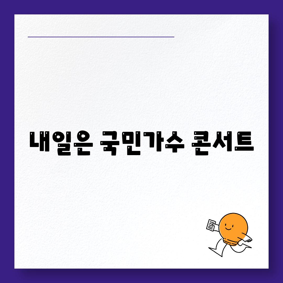 A. 내일은 국민가수 콘서트는 국민 체육 대회장에서 개최되며, 최대 10만명을 수용할 수 있습니다. 관람객은 콘서트 당일 사회적 거리두기와 마스크 착용 규정을 따라야 합니다.