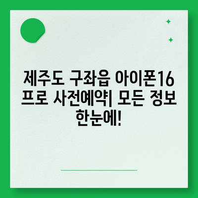 제주도 구좌읍 아이폰16 프로 사전예약| 모든 정보 한눈에!